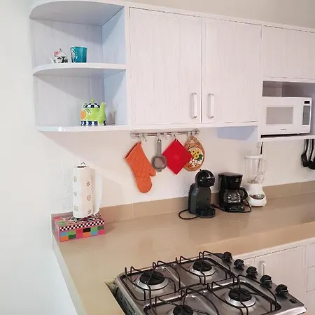 The accommodation has an equipped kitchen and a microwave, a refrigerator, and kitchenware. Guests staying at the apartment can enjoy the convenience of having tea and coffee-making facilities at their disposal. A Mexican cuisine is served at Carnitas Michoacan, situated approximately 5 minutes' walk away. The 2-bedroom apartment is also situated 25 km from Isla Mujeres airport.